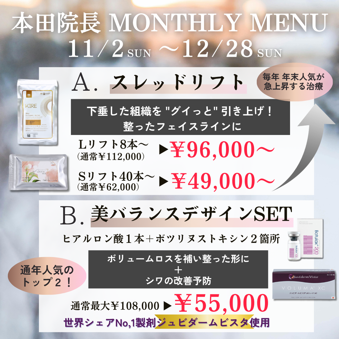 スレッドで引き上げ、ヒアルロン酸+ボツリヌストキシンで仕上げる冬のリフトアッププラン。今年いちばんの自分に。