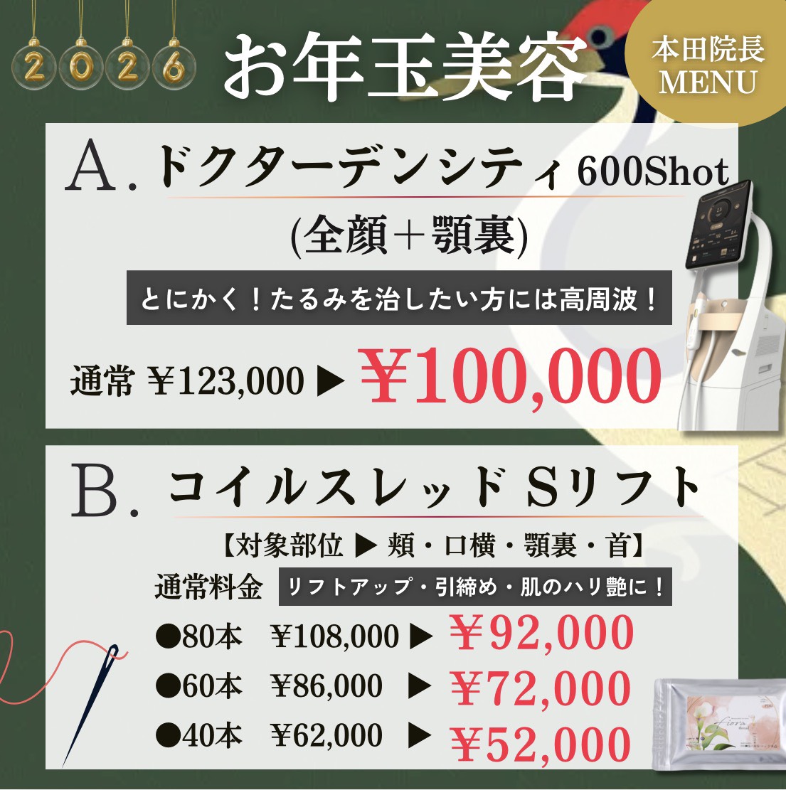 “院長”特別料金のお年玉メニューで、美のランクアップを✨
