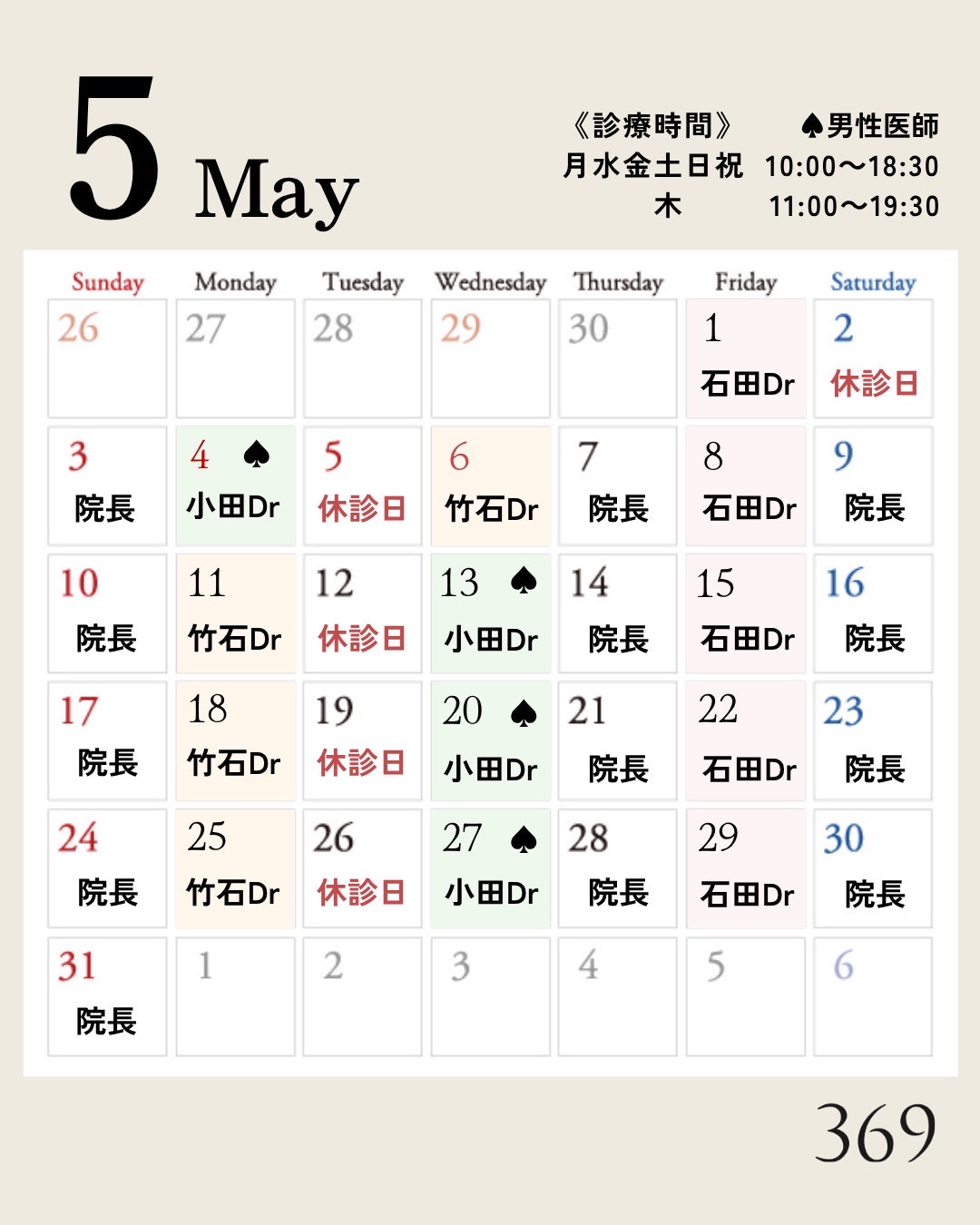 〈2026年5月休診日〉